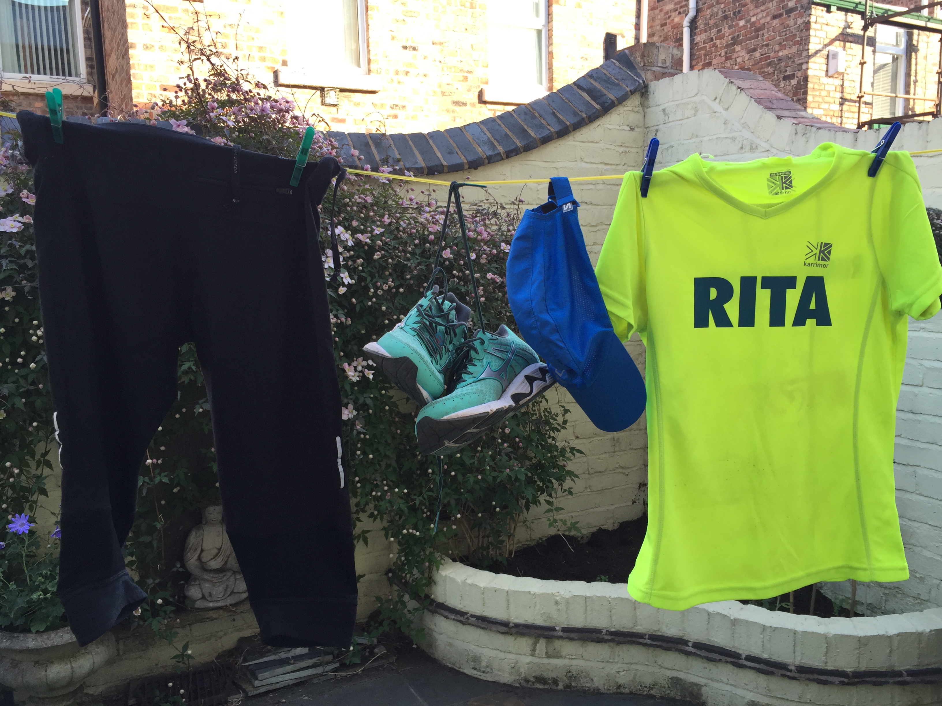 Got my T-shirt printed with the charity on the back and my name is big letters on the front. With my bright blue hat and mint green running shoes you can’t miss me!