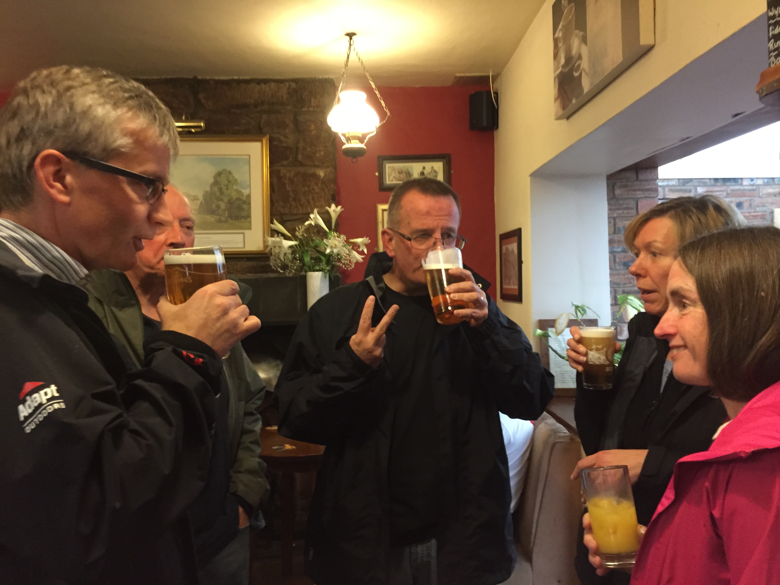 The drive to St Bees was smooth with Simon and Heather acting as Day 0 Sherpas. I’m just writing this as the final checks are made on the maps as to which way to turn when we step out of the B&B and beyond. We’ve all just eaten a hearty (starters, mains AND pudding) dinner at a local eatery. Surprisingly, for a small place, St Bees has a number to choose from and Lulu’s, once a railway ticket office now a Thai restaurant, was particularly tasty.