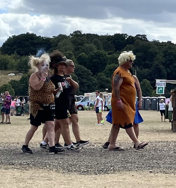 When we first got into the grounds of the festival at around half 12, it was still relatively empty. But within an hour, well before Bjorn Again took to the stage at 2pm, it was teeming. Apparently Saturday was fancy dress day, and some people had gone to town. I saw The Flintstones, looking a bit worse for wear, E.T., and even a guy in a Rubik’s cube which doubled up as a handy drinks stand when he took it off.