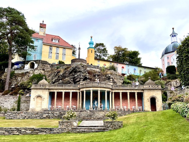The architect, Sir Bertram Clough Williams-Ellis, who happened to have wealthy, land-owning family to help him find a space for his vision wanted to pay homage to a Mediterranean, Italianate style of landscape. The strikingly colourful facades of Portofino are brought to mind, but Williams-Ellis was apparently not trying to copy that village directly, but bring a general feel of that neck of the woods, to this little inlet in Wales.