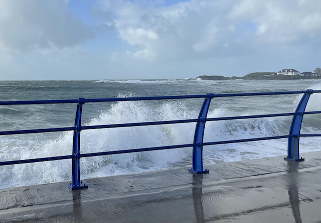 When we popped out to this little corner of Wales back in September, the waves were sedate ripples, and the sand was golden on a gloriously sunny day, and we walked along the promenade after meeting the amazing Ken.