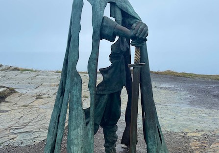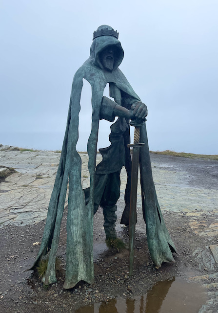 I wouldn’t have paid except we’d taken quite a big detour to get here, in the rain, and I know I should have researched it all before but I didn’t. So I paid, and then I did a walk/jog onto the grounds, and took a few pics in the mizzle, and then walked/jogged back. Didn’t even see Merlin’s Cave – actually just a regular cave – because the tide was coming in. At least I got a little bit of hill training in. It was an impressive statue, reminded me of the Ring Wraiths in The Lord of the Rings, but he could have been a bit taller and more imposing.