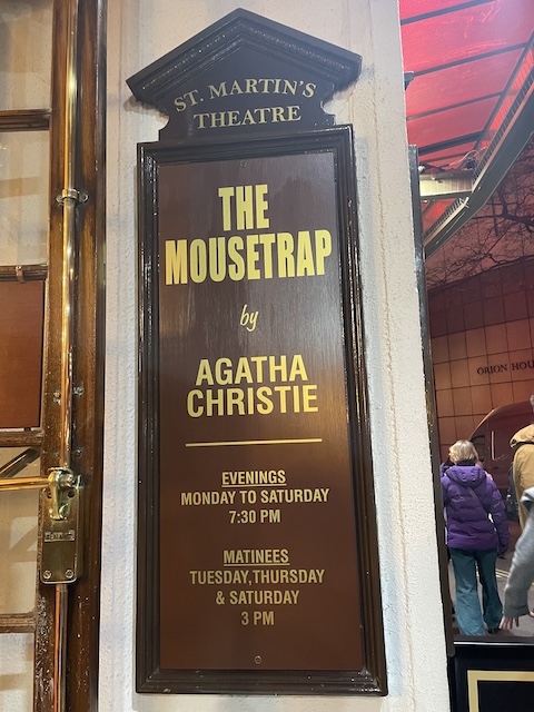 Our plan for Friday night was to take in a show, and what better one to see than the longest running show in London. Aside from Covid, The Mousetrap has been playing continuously to audiences in London, since 1952. St Martin’s Theatre, a charming, intimate Edwardian building, has housed it since 1974. The show was deliciously hammy, and I didn’t guess who done it, but we did have some event appropriate cocktails in the interval.