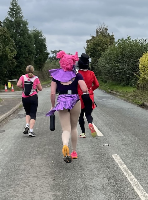 I pushed the small flutter of panic back down again because I’d been here before. During the ultra, I was feeling the lack of bounce from around this time too, and I had managed to keep going regardless. My plan, such as it was, was to walk the minute or two at the water stations, which were roughly three miles apart, and run in between. That worked for the first half.