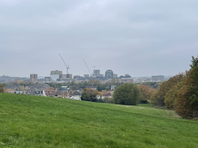It was yet another murky day, and cold enough to keep my London Marathon consolation jacket for most of the way around. On the plus side, the views from the tops of these hills were far-reaching, across a good chunk of northwest London all the way to Harrow on the Hill, and Wembley Stadium.