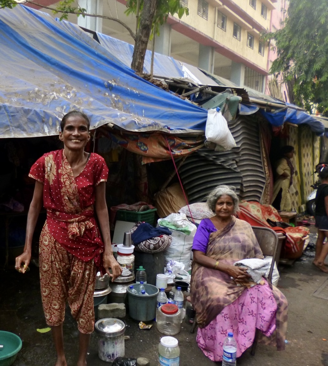 The founder of Pehchan, which started a little over ten years ago, is Brijesh Arya. He was taking us to meet some of people that they worked with, in order to get a little more understanding of how they live. After Mahim, we went into Kamathipura. It was a red-light district set up by the British in the nineteenth century to cater for its soldiers, and it still is an area where a lot of sex-work is done, alongside being called home by many homeless. These abodes seemed a bit more developed than for the basket weavers. There were some tarpaulin sheets held up by bamboo scaffolding. In front of these were benches where some of the older women sat, gave us tea and chatted while the grandchildren ran around and played. Their children were out at work.