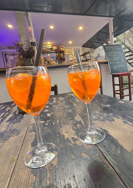 We found a very lovely second-hand bookshop cum café to have a lunch time bite, along with a couple of Aperols. You needed to go through the shop, laden to the ceiling with books of a thoroughly random nature, to the courtyard café. A moment of cool, calm ambience after our hectic long morning of sight-seeing.