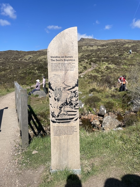 We had seen the signs and the orange flags dotted about, for the cross-country motorbike trials taking place this week, but we didn’t actually see any bikes yesterday. Today, however, there were plenty. Initially away in the hills, we heard the waspy buzzing and then saw from afar the bikes roll and jump over the heather, by the time we were on the path close toward Kinlochleven, we were getting out of their way from time to time as they whizzed along the path. Sally read in a review from just a few days ago that the last leg of someone’s journey was ‘ruined’ by these bikes. They weren’t constantly streaming past us, and to be honest, it added a little extra entertainment to our plodding.