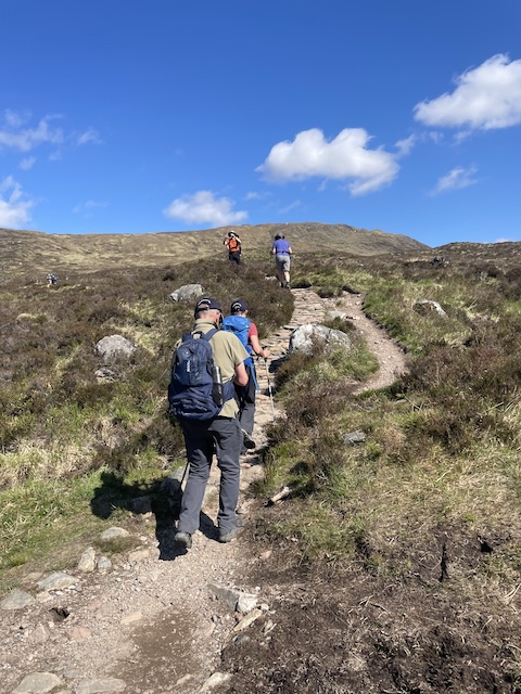 Simon’s drugs (of the pharmaceutical variety as his hips weren’t playing ball) hadn’t quite kicked in and Heather felt about her first mile or two of walking as I feel about my first mile or two of running – that it always starts off hard. Luckily the first three miles in this case, was a fairly level track that didn’t venture much higher than the road that was running through Glencoe.