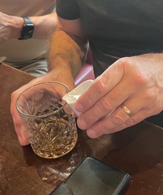 It was explained to me that I was to only put the smallest drop of water into my shot to ‘open it up’. So I took a tiny sip first just to see if there was any difference in the taste. Reader, there really was, and it was rather pleasant.