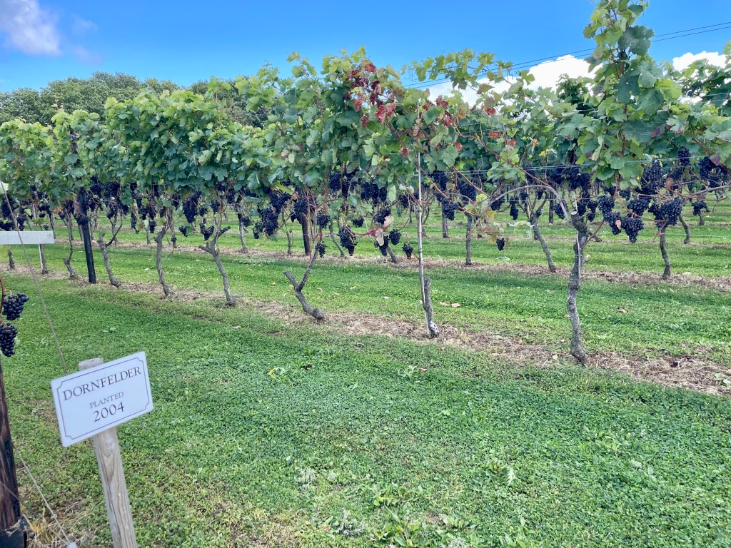 I was able to enjoy an impromptu tasting session at another vineyard this afternoon, in Bibbenden. The grapes hanging low on the rows of vines we walked through (legitimately this time) looked succulent. I don’t think I have ever visited a vineyard before because I was surprised at the way the vines are tied so that all the grapes hang below the leaves. It’s extremely efficient when it comes to picking them. Annie has been taking notes for our single grape vine. We are staying very close to a famous English vineyard called Chapel Down, but that has at least one local competitor. Biddenden wines are very comparable.